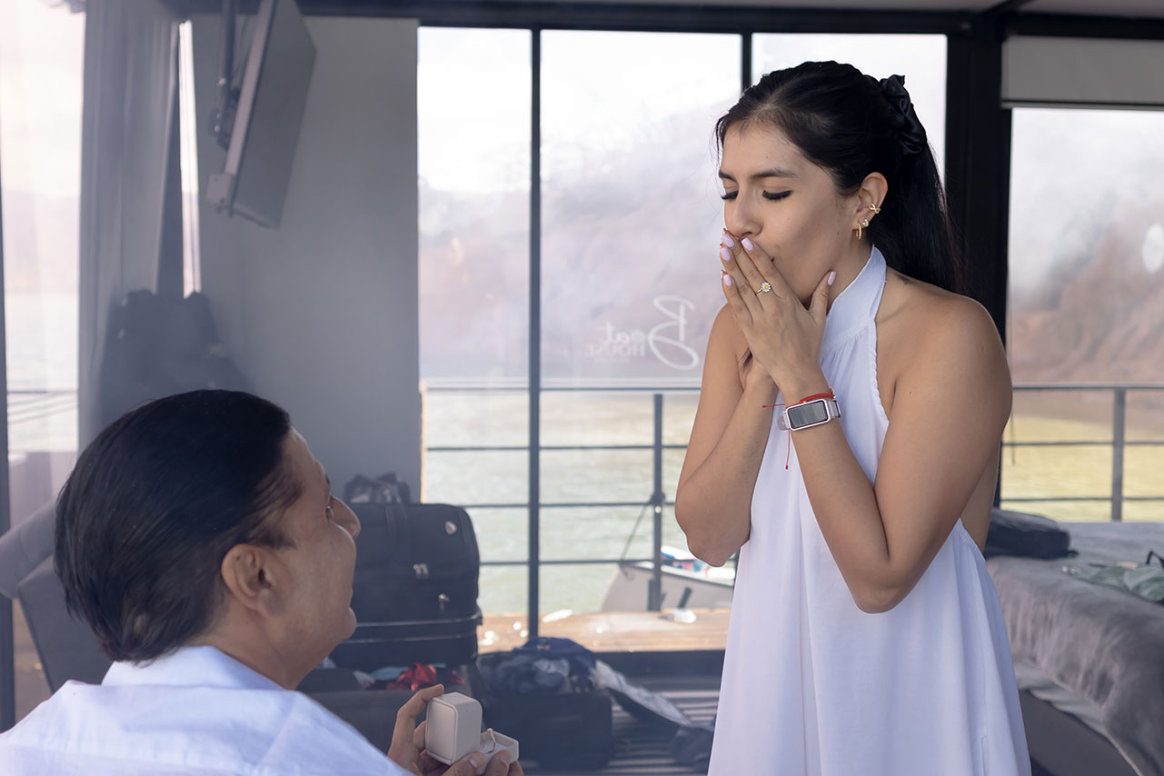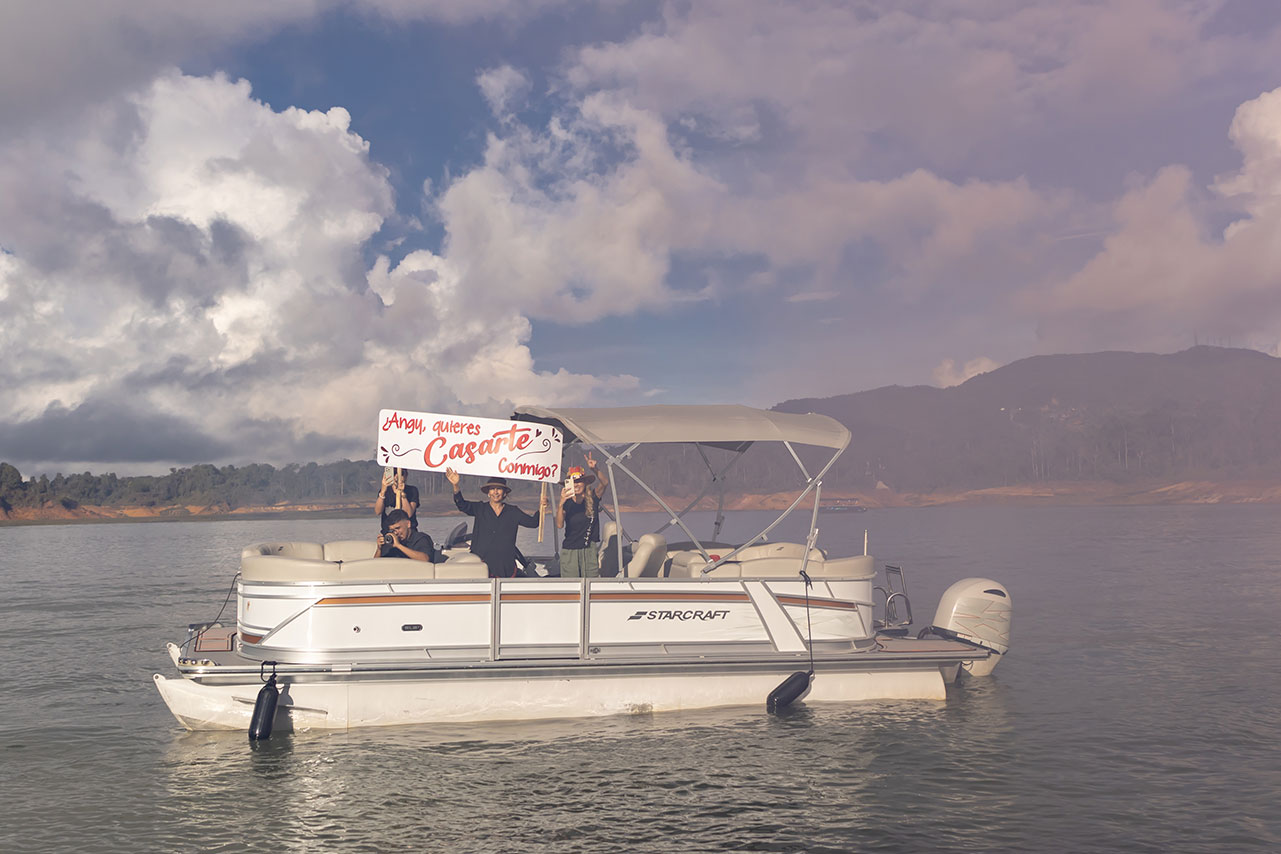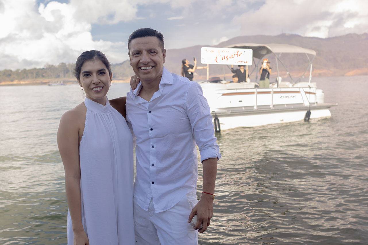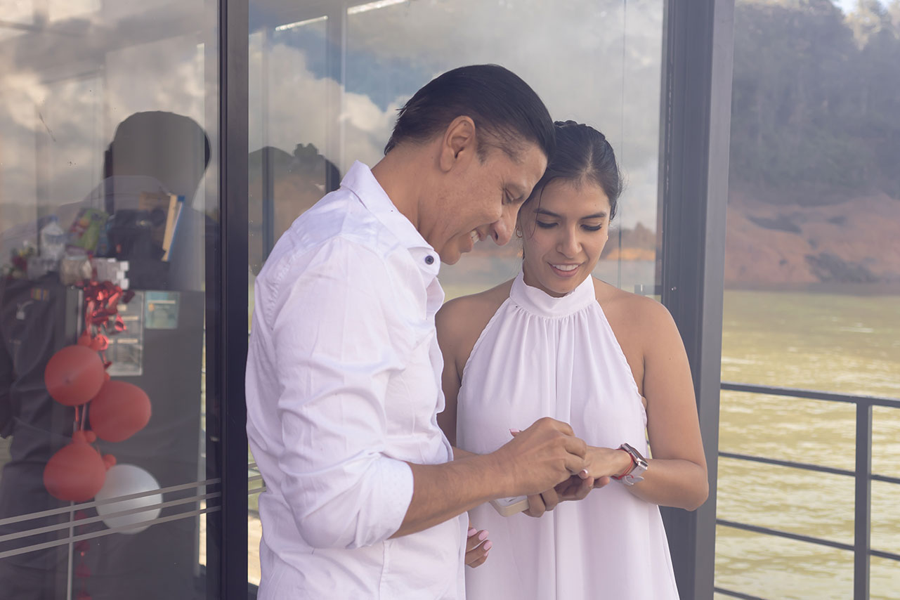 The wedding proposals on the lake at sunset in Guatapé were a magical setting, where the natural landscape and the golden light of the sun created a romantic and unforgettable atmosphere. Each moment was carefully designed to reflect the unique essence of the couple, making this day an indelible memory. The beauty of Guatapé, with its serene lake and the sky painted with warm colors, served as the perfect backdrop for a proposal full of love and emotion.